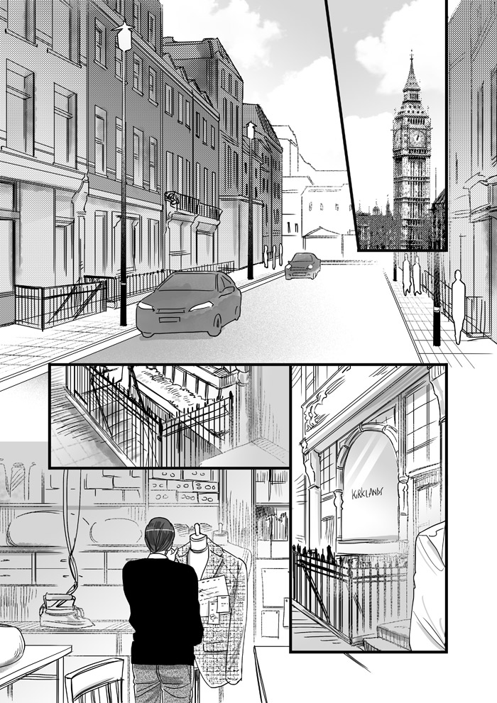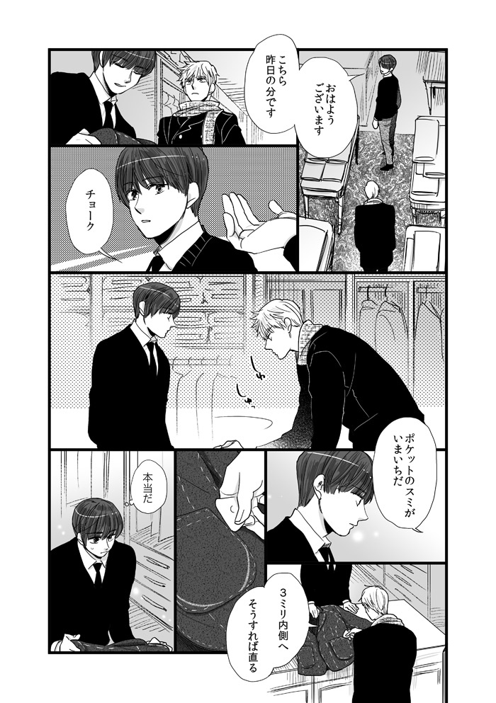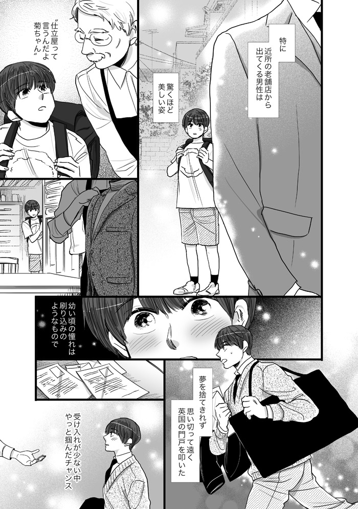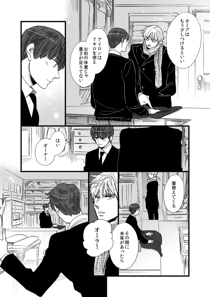 仕立て屋オーナーのアーサーと、見習い職人の菊。