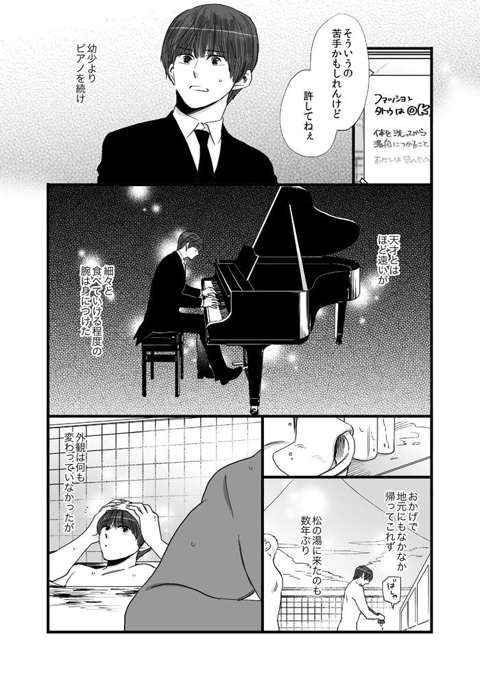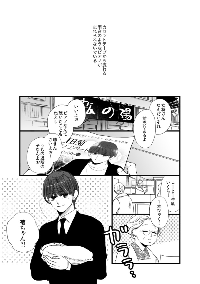 ピアニスト本田菊と、謎の銭湯好き外国人の蘭兄さんのお話です。