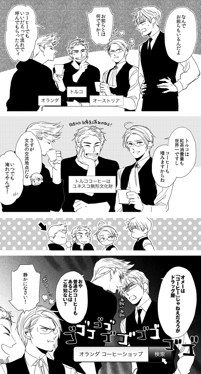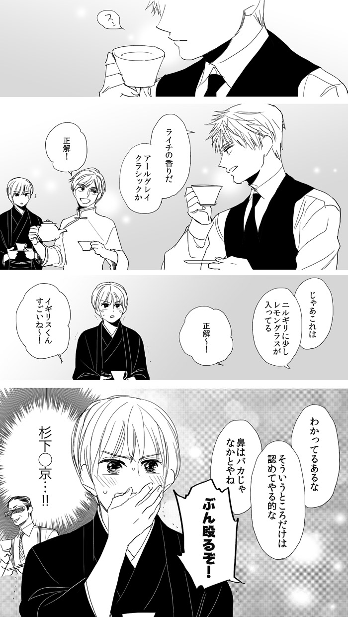 英中のスケブを描かせていただいた方から、お茶会とかよさそう〜!というお話をいただき、早速描いてしまったものです。