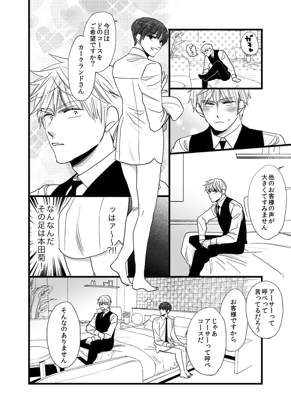 風俗趣味を極めたいサラリーマン・アーサーと、風俗店勤め・菊が駆け引をするいちゃいちゃギャグ漫画です。頭の悪いお話です。たまに下ネタを口走ります。