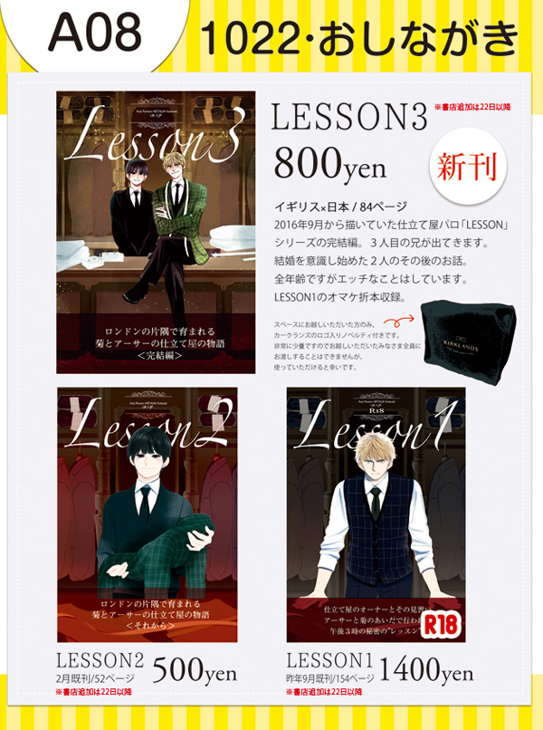 仕立て屋パロ本はもう描く予定はなかったんですが(ほんとに…)そういえば3人目の兄を全く描いてないなと気づき、完結編という形でLESSON3を描かせていただきました。