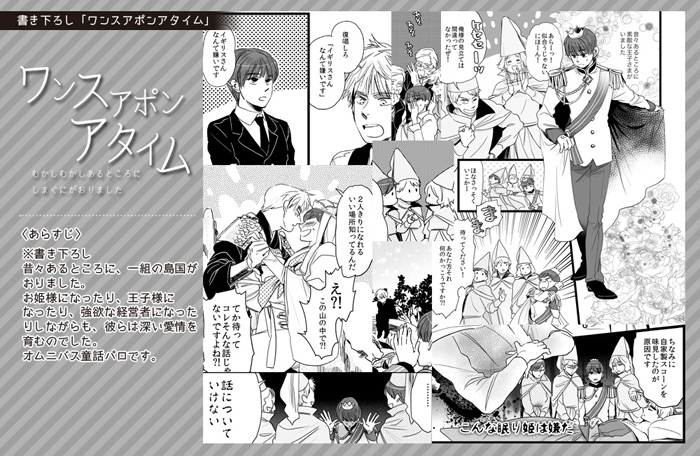 国設定のお話から、現パロ、おとぎばなしパロなどあります。