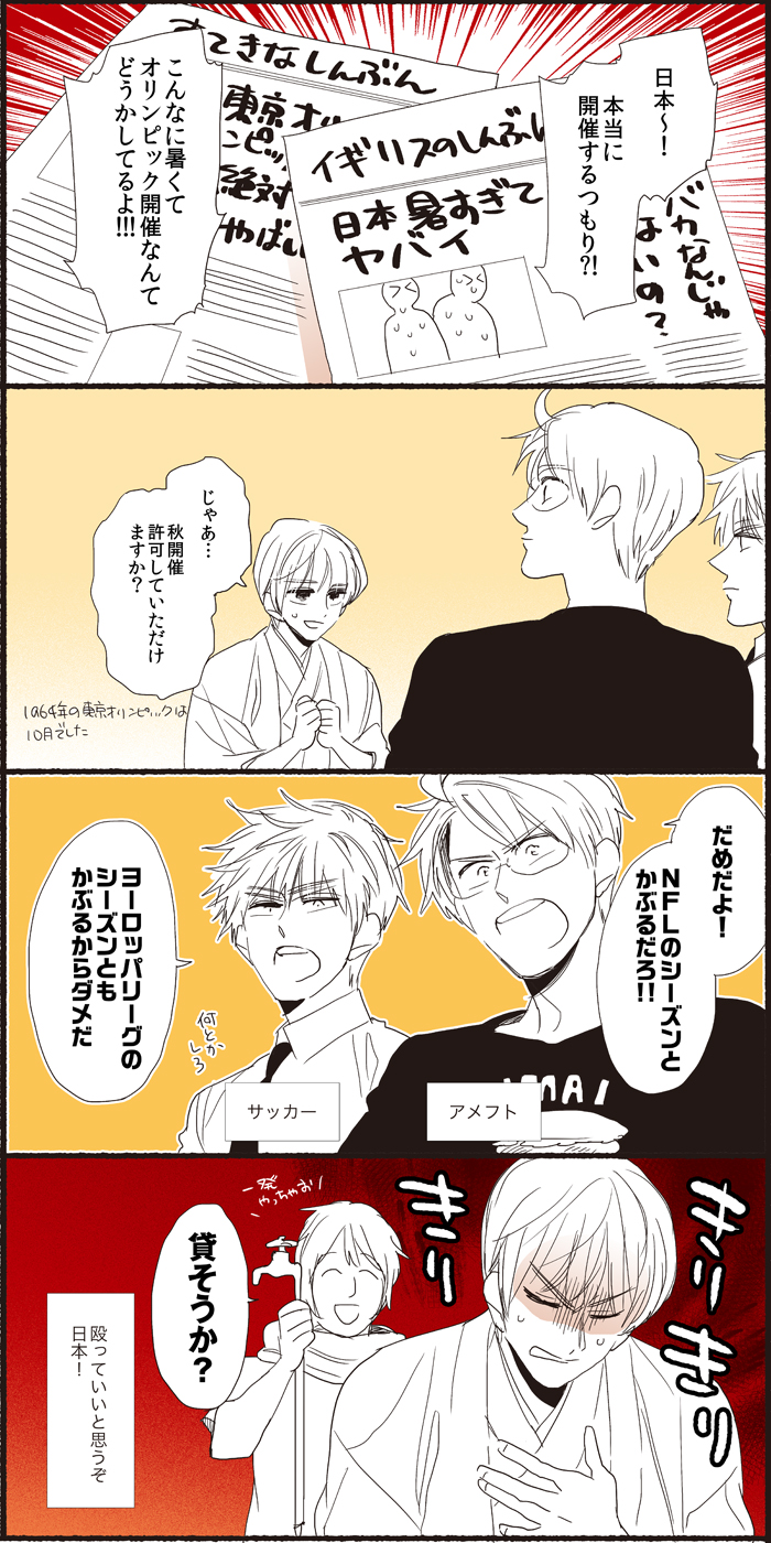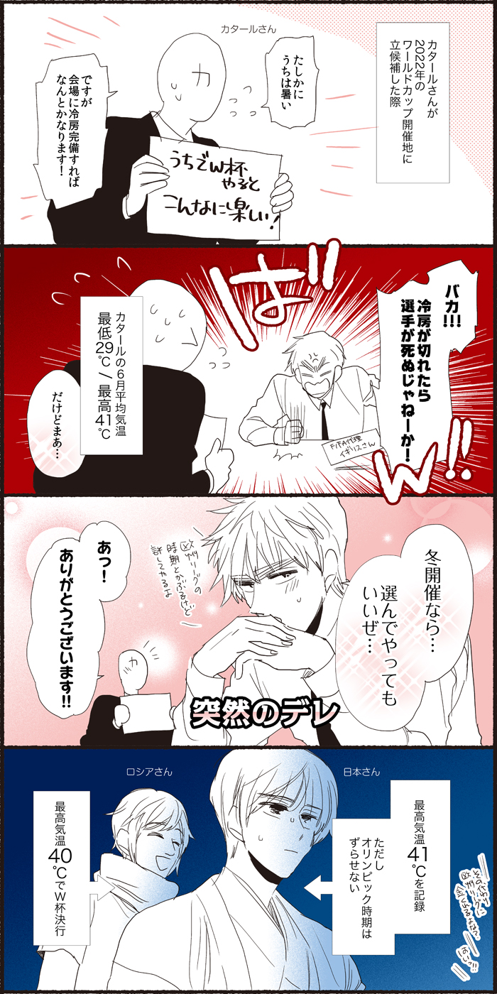 漫画らくがき 暑いねっていう落書き 開催時期に関しては、どう考えてもどうにかなるだろと思いつつ、毎回アメリカ様の都合でフィギュアスケートの試合時間を決められている点を考えると諦めもあったりします 2018-07-25 | Posted in 漫画らくがき | Comments Closed 関連記事 らんにちのボケたおし漫画 らんにち漫画 なんとかトッツォまんが オリンピックらくがき ネシアさん考察 < ワールドカップらくがき(随時更新中) 大英博物館で漫画展開催と聞いて >