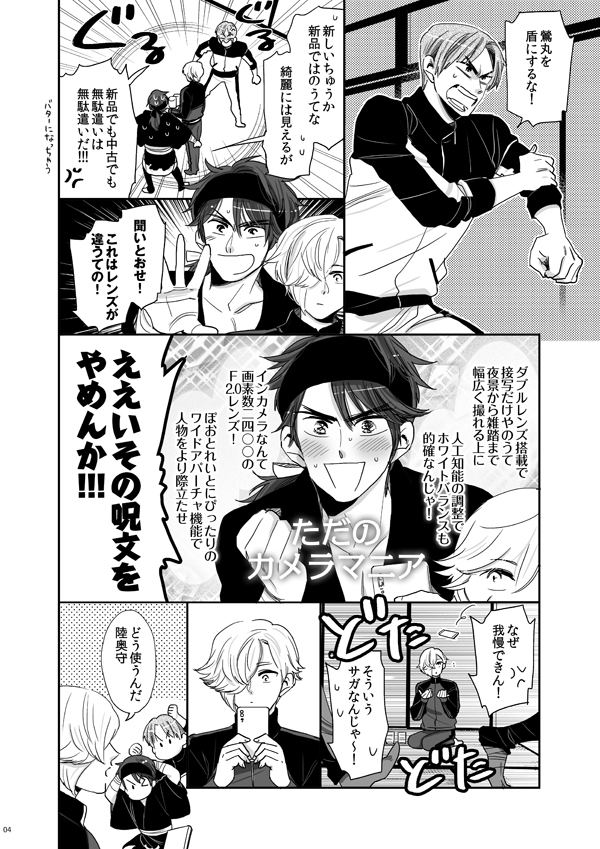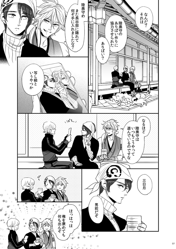 陸奥守のアリバイ作りに協力させられてカメラ(スマホ)を手に入れた鶯丸。本丸中でさまざまな写真を撮影するのだが、あるトラブルに見舞われる。ほのぼの楽しいお話です。