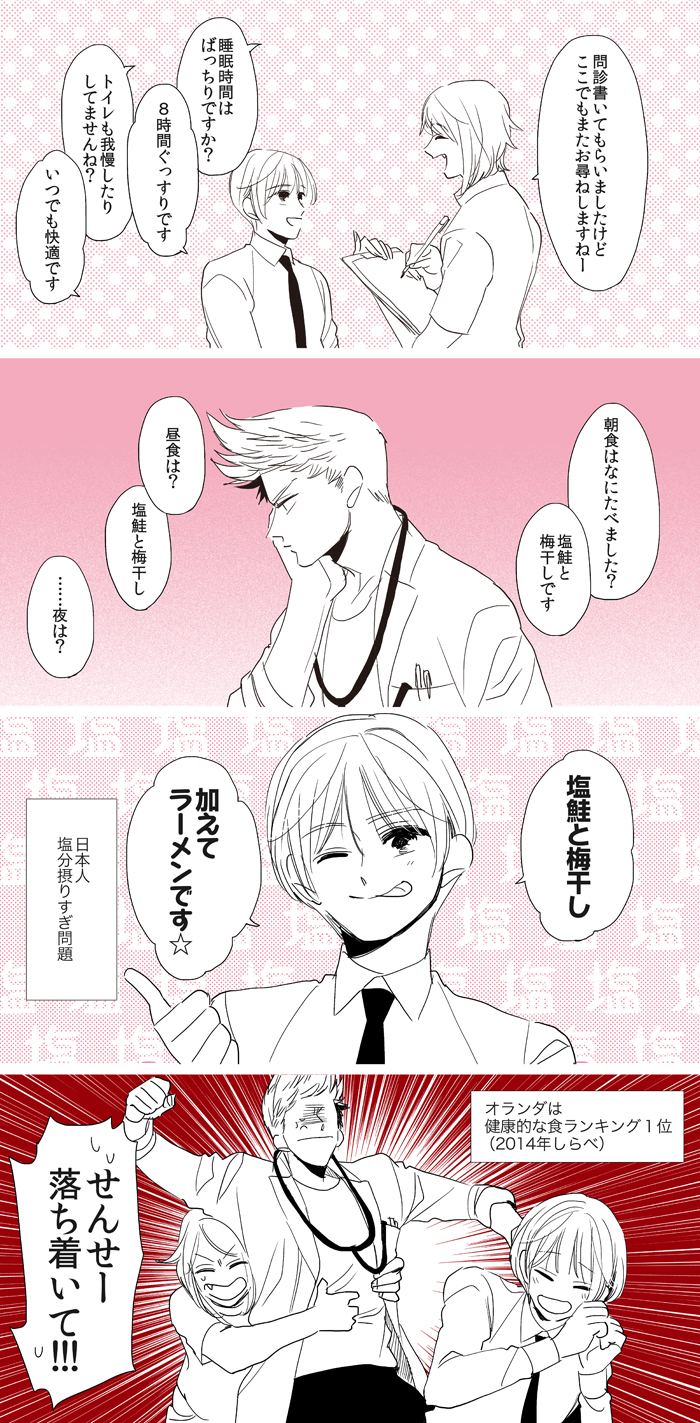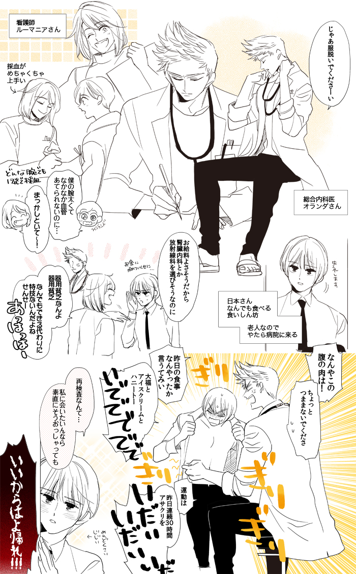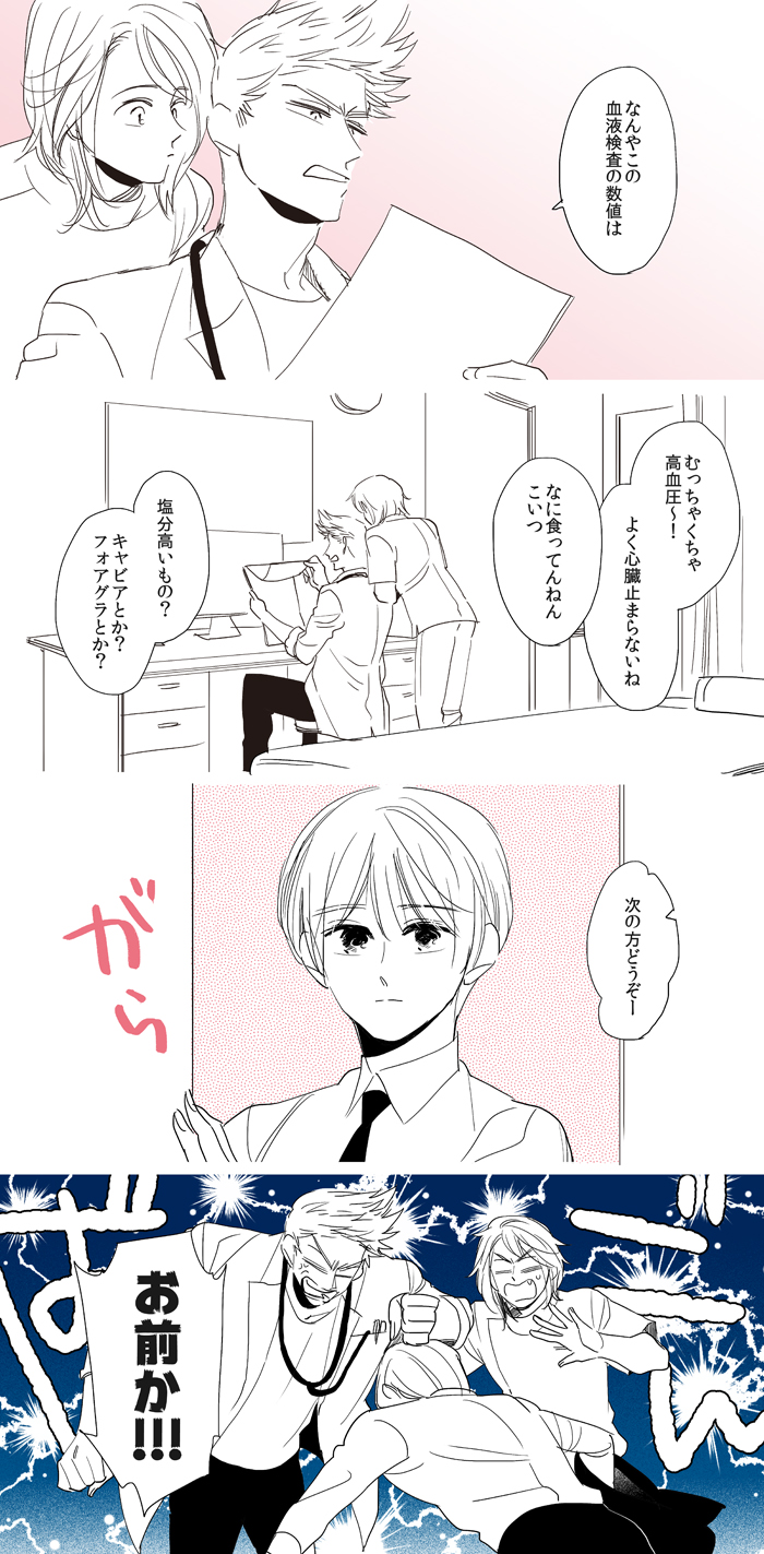 先日の擬人化王国にて、医者パロのスケブを描かせていただきまして、個人的に気に入ってしまったのでメモ的な漫画です。
