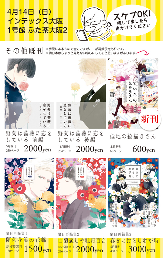新刊がよりによって英日ではないんですが、英日はなんとか折本を用意する予定ですので、間に合っていましたら手にとっていただけると幸いです。