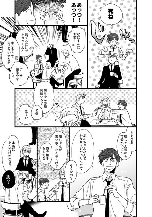 ある逢瀬の夜、アーサーが一つの贈り物をした。それに悩まされる菊のお話。