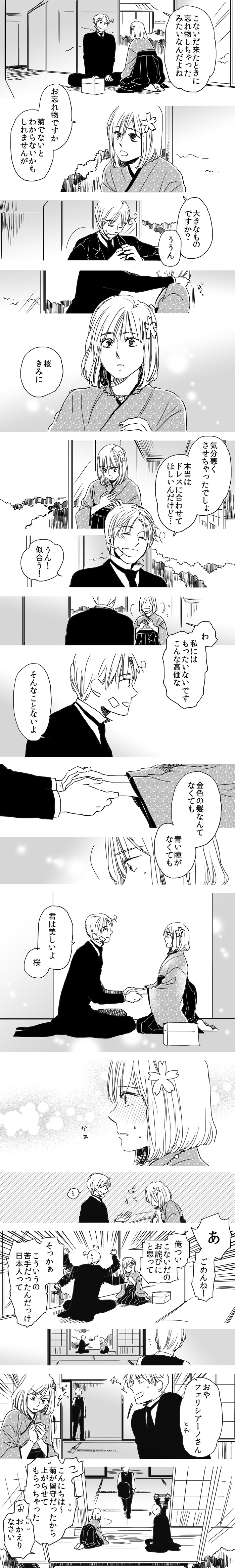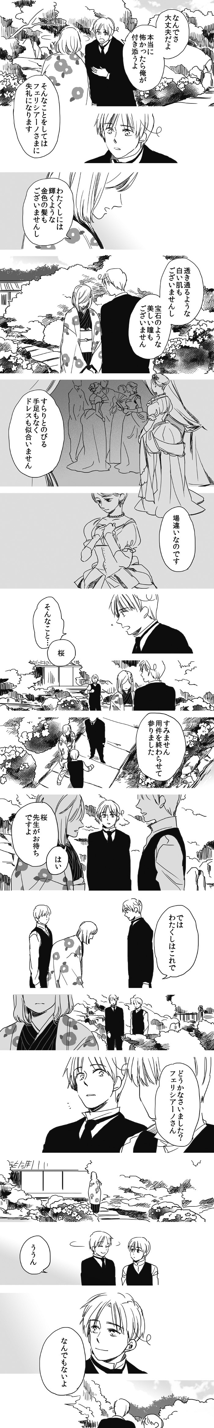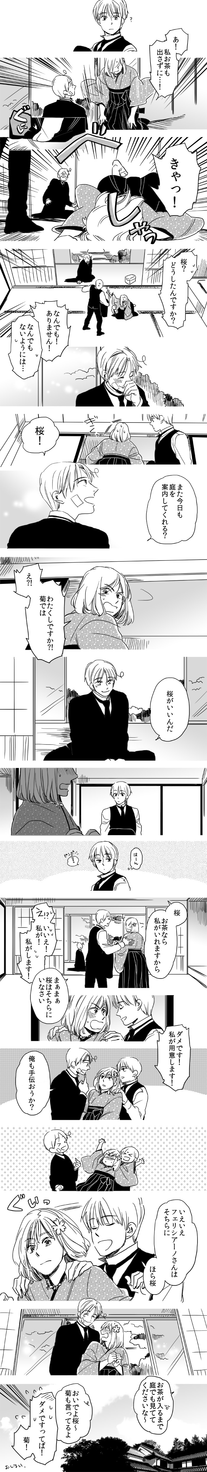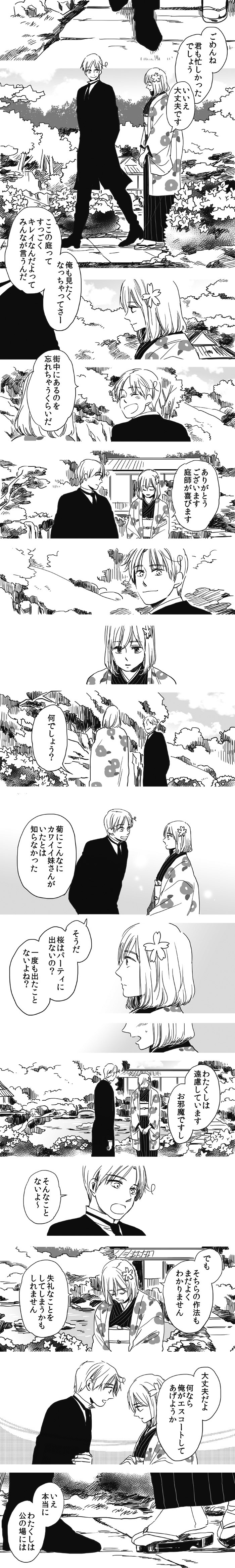 勝手な妄想ですが、本田桜は日本の貴族文化の象徴であり、本田菊(武士文化の象徴)の姉のつもりで描いています。