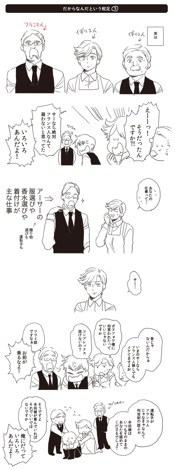 漫画らくがき カークランド邸のひとびと2 「Pygmaliom」にも収録されています。 人間と国とのかかわりのお話が好きで…… 2016-02-10 | Posted in 漫画らくがき | Comments Closed 関連記事 らんにちのボケたおし漫画 らんにち漫画 なんとかトッツォまんが オリンピックらくがき ネシアさん考察 < カークランド邸のひとびと カークランド邸のひとびと3 >