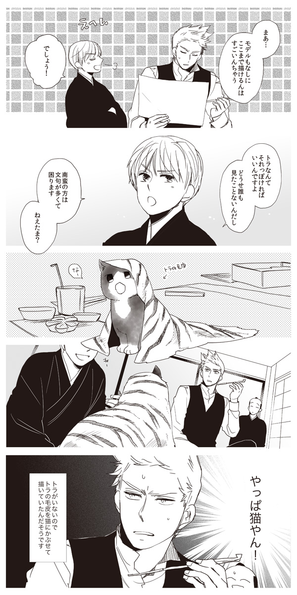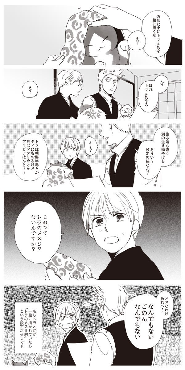 漫画らくがき 日本さんと虎と豹 先週の土日に京都に行ってきたのですが、そちらで聞いたお話に、あーっかわいいいい^///^と悶えてしまいまして、らくがきです。 2016-03-12 | Posted in 漫画らくがき | Comments Closed 関連記事 らんにちのボケたおし漫画 らんにち漫画 なんとかトッツォまんが オリンピックらくがき ネシアさん考察 < OVチップカールトの話 フェリシアーノと桜のまんが >